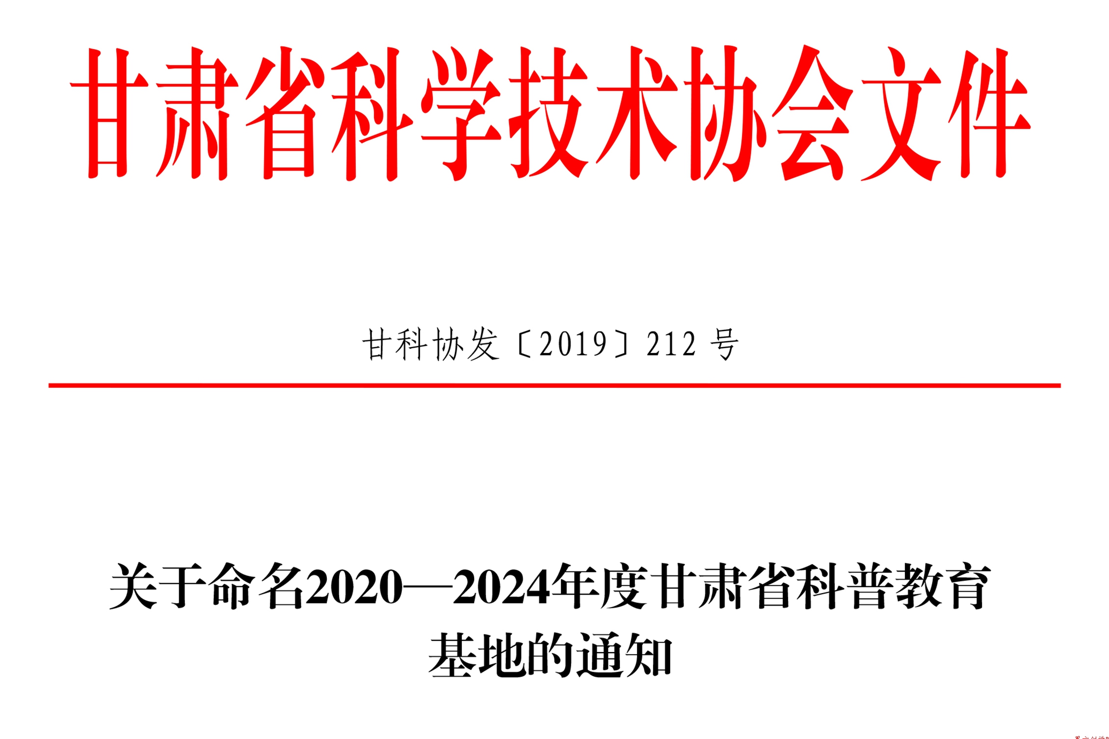 喜訊|我司被授牌2020-2024年度甘肅省科普教育基地
